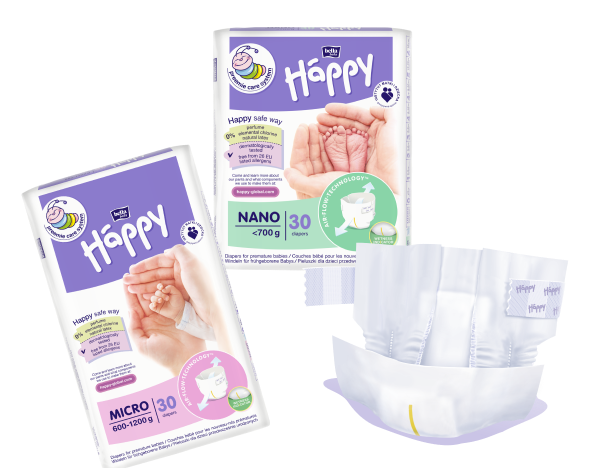 Išskirtinės sauskelnės neišnešiotiems kūdikiams. Su Preemie Care System technologija galite būti tikri, kad Jūsų mažylis gauna geriausią priežiūrą. Happy Nano sauskelnių saugumą patvirtina dermatologiniai tyrimai ir teigiama Motinos ir vaiko instituto nuomonė.